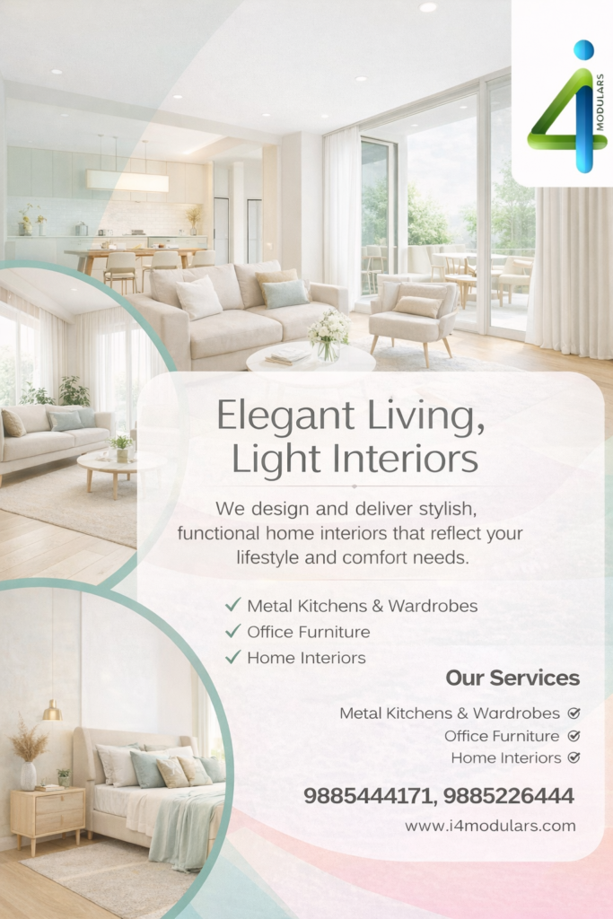 If you are planning to upgrade your cooking space, trust I4 Modulars interior designers for reliable and stylish rust free metal kitchen solutions. Call 91-9885444171 or 9885226444 today to design a durable, hygienic, and modern kitchen that enhances your home’s functionality and elegance
